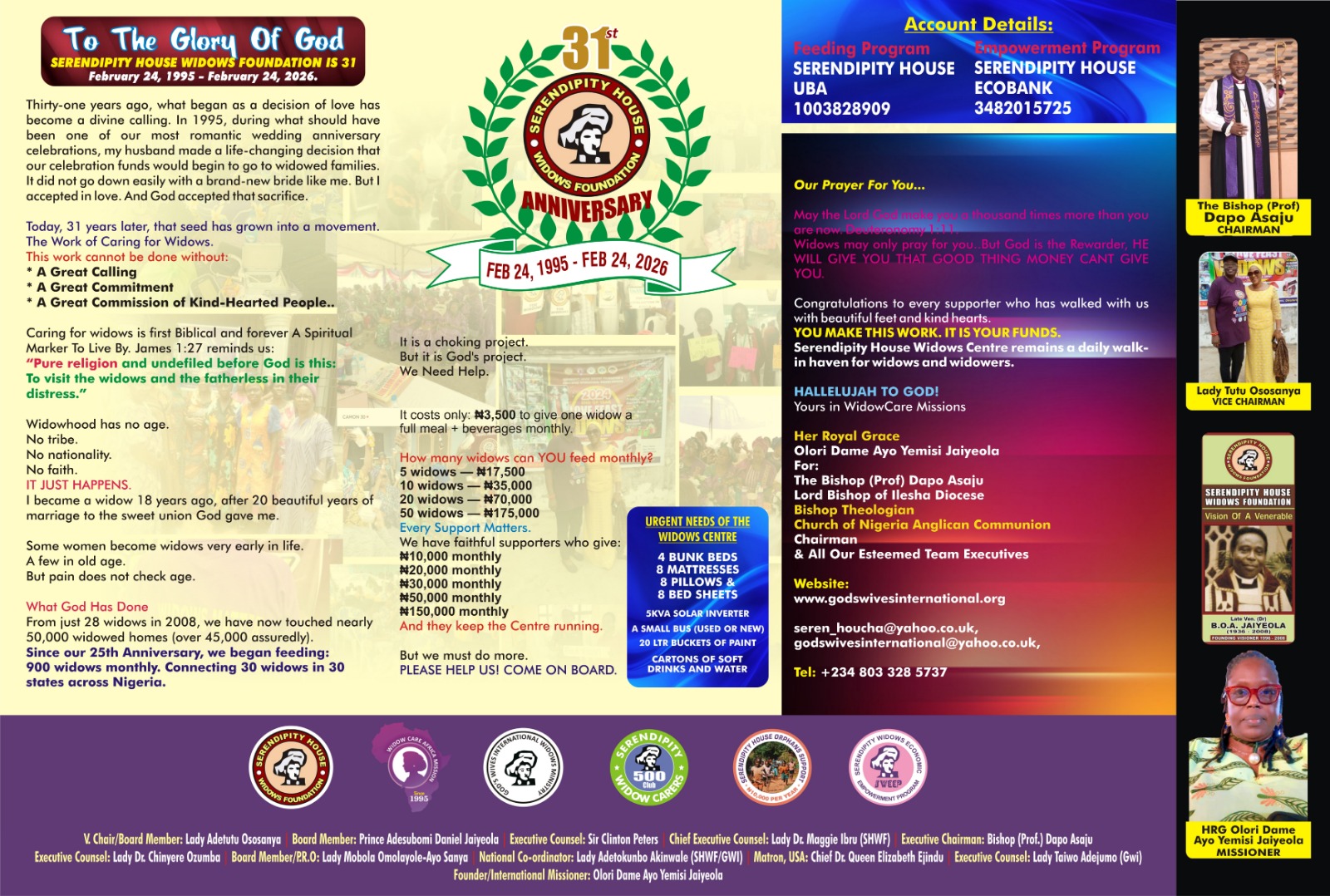 To the Glory of God, today we celebrate 31 years of Serendipity House Widows Foundation.